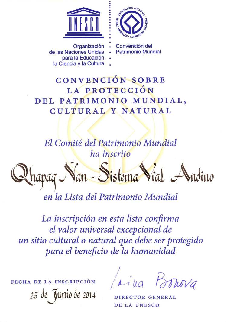 En el año 2014, el Qhapaq Ñan fue declarado Patrimonio Mundial de la Humanidad por la UNESCO, reconociendo su valor universal y su estado de conservación en muchos tramos. Hoy en día, sigue siendo símbolo de identidad cultural andina y muchas comunidades aún lo utilizan o lo celebran en festividades.