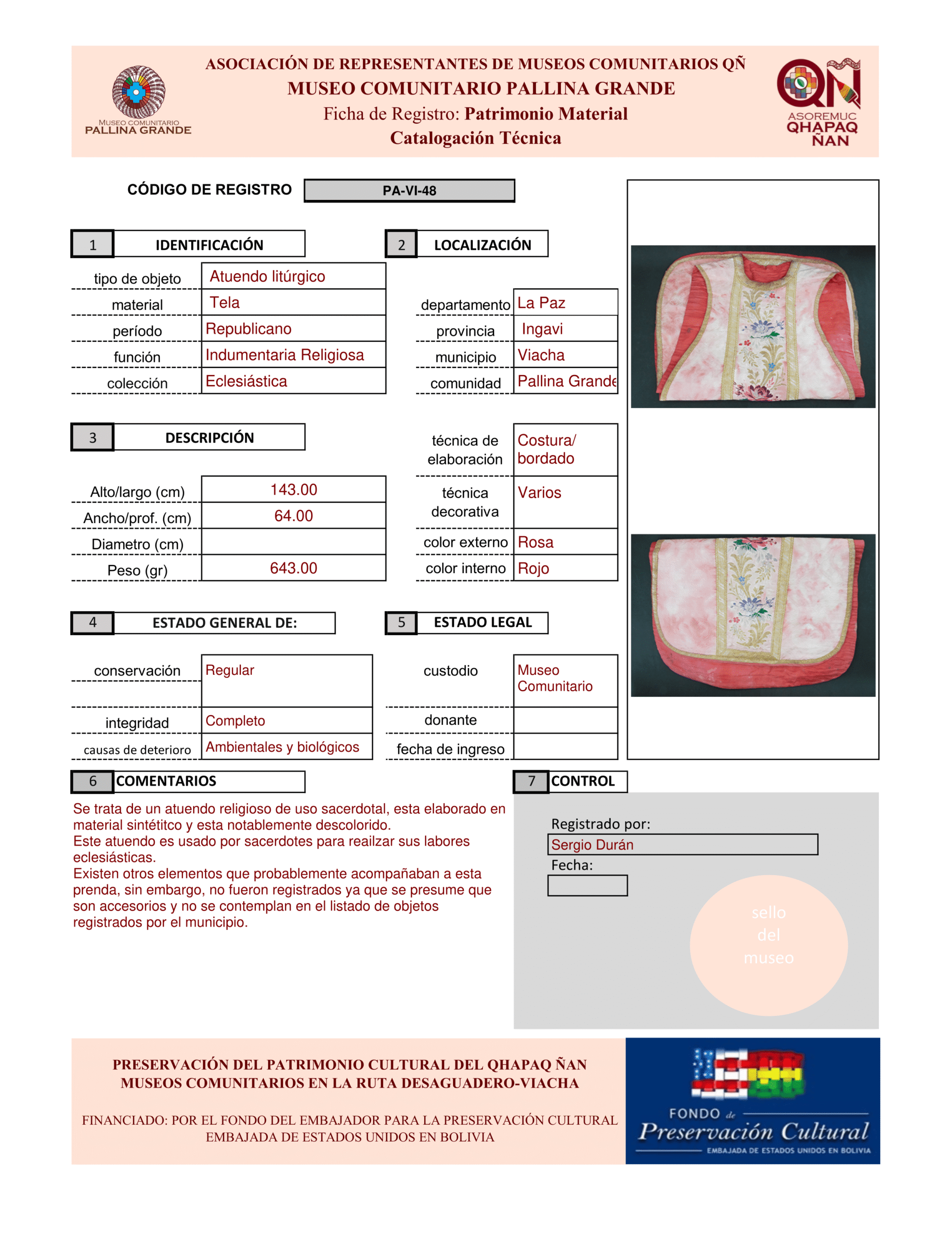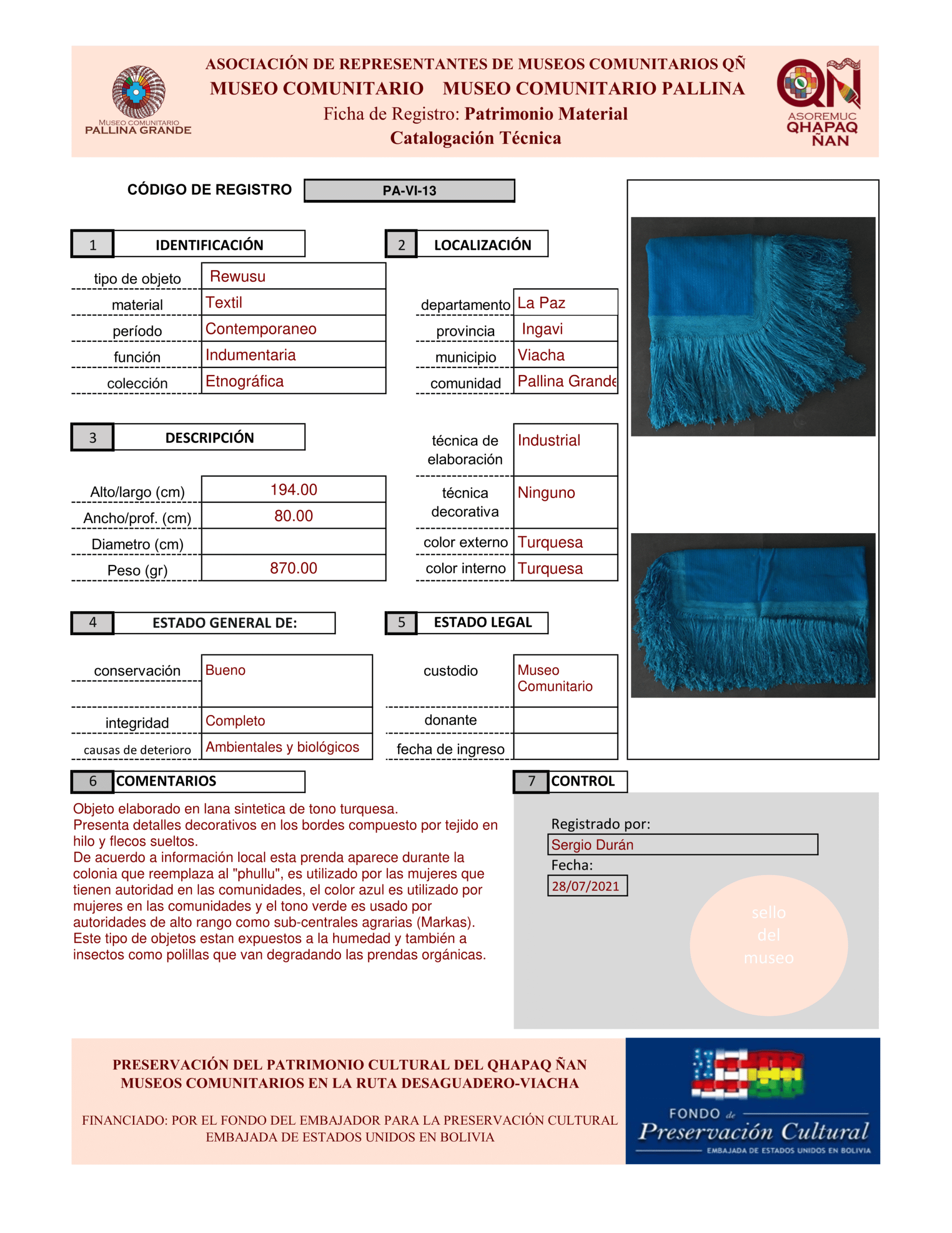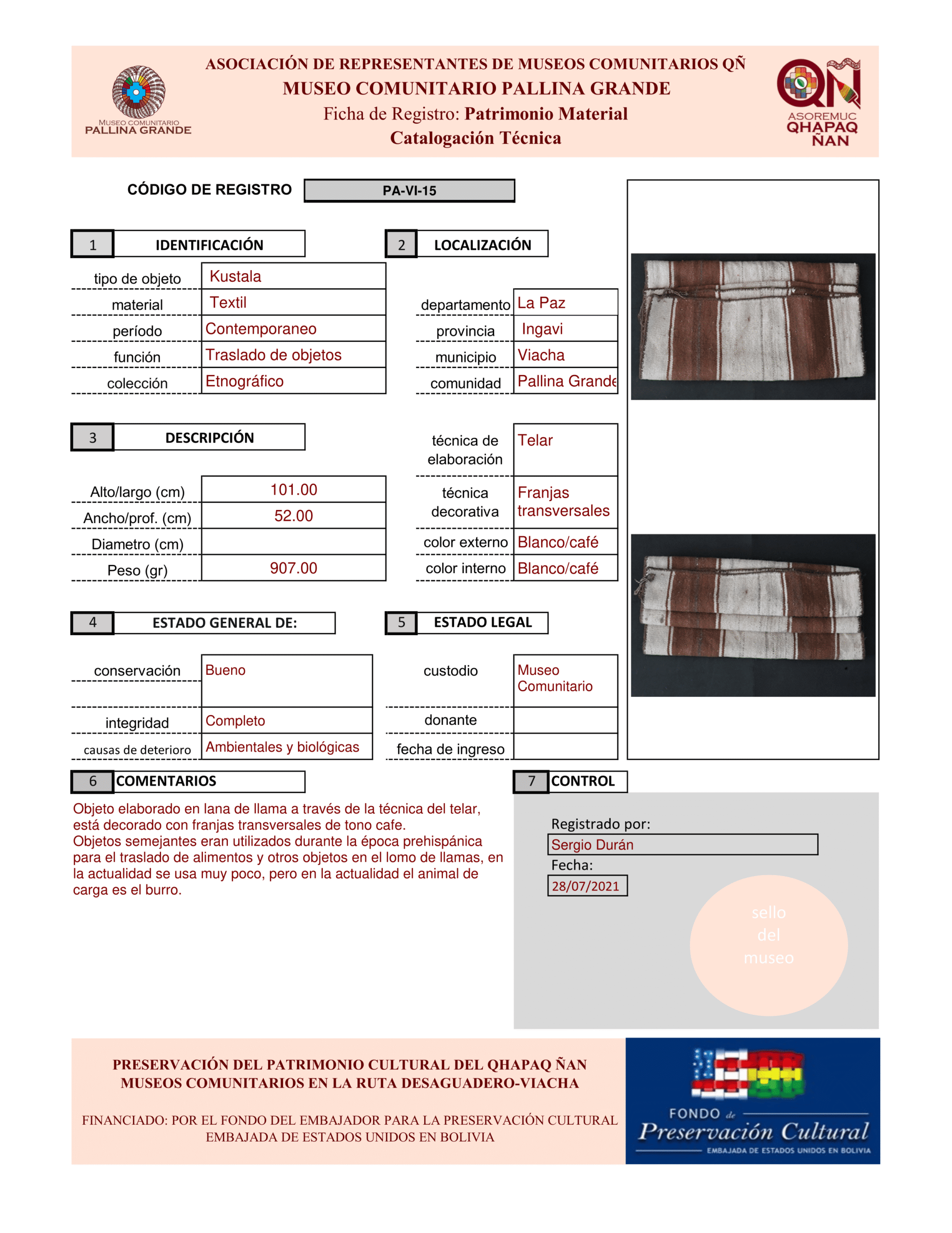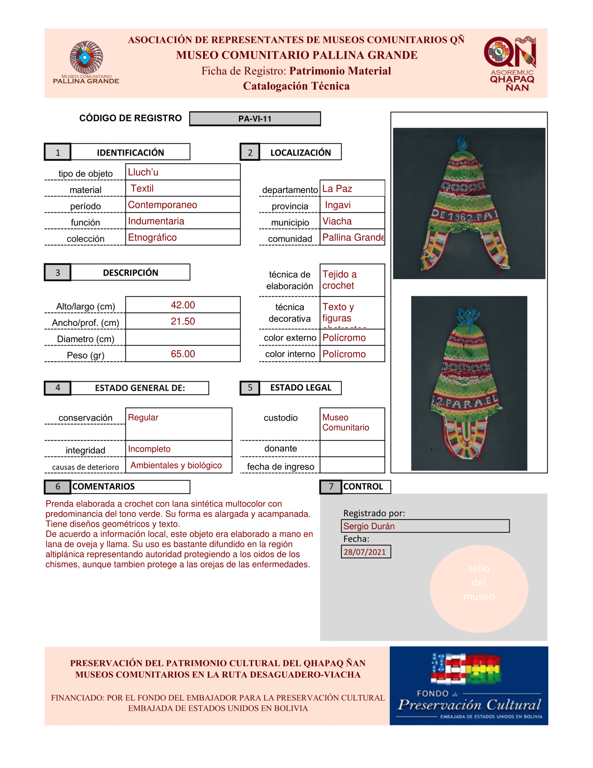 Ejemplos de las 162 fichas de objetos que forman parte de la CATALOGACIÓN de los Museos Comunitarios del Qhapaq Ñan