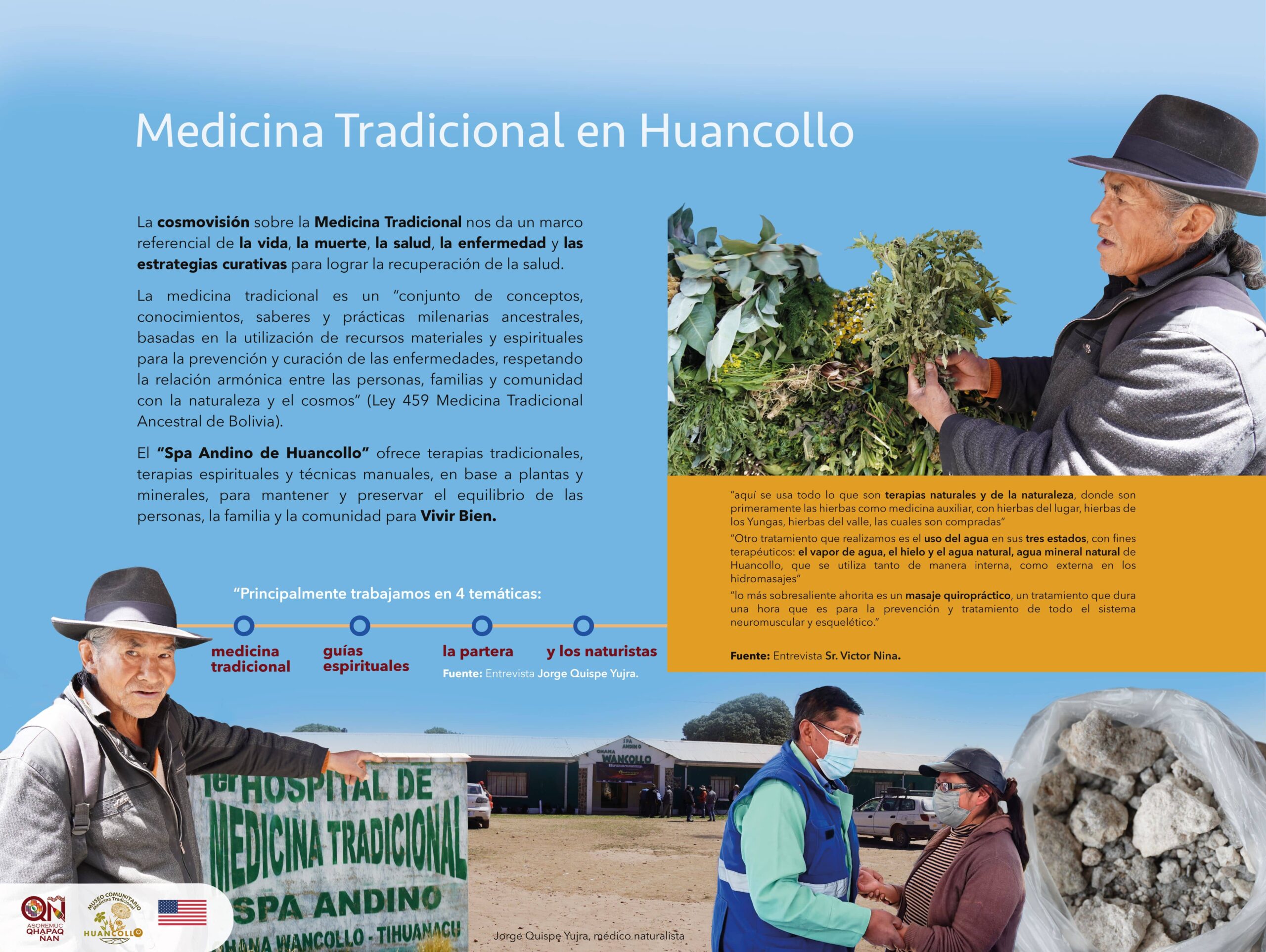 La comunidad tiene gran conocimiento en medicina tradicional y elementos utilizados en el pasado con propósitos curativos que siguen utilizando hoy. Destaca su participación en rituales ancestrales (ceremonias Tiwanaku).