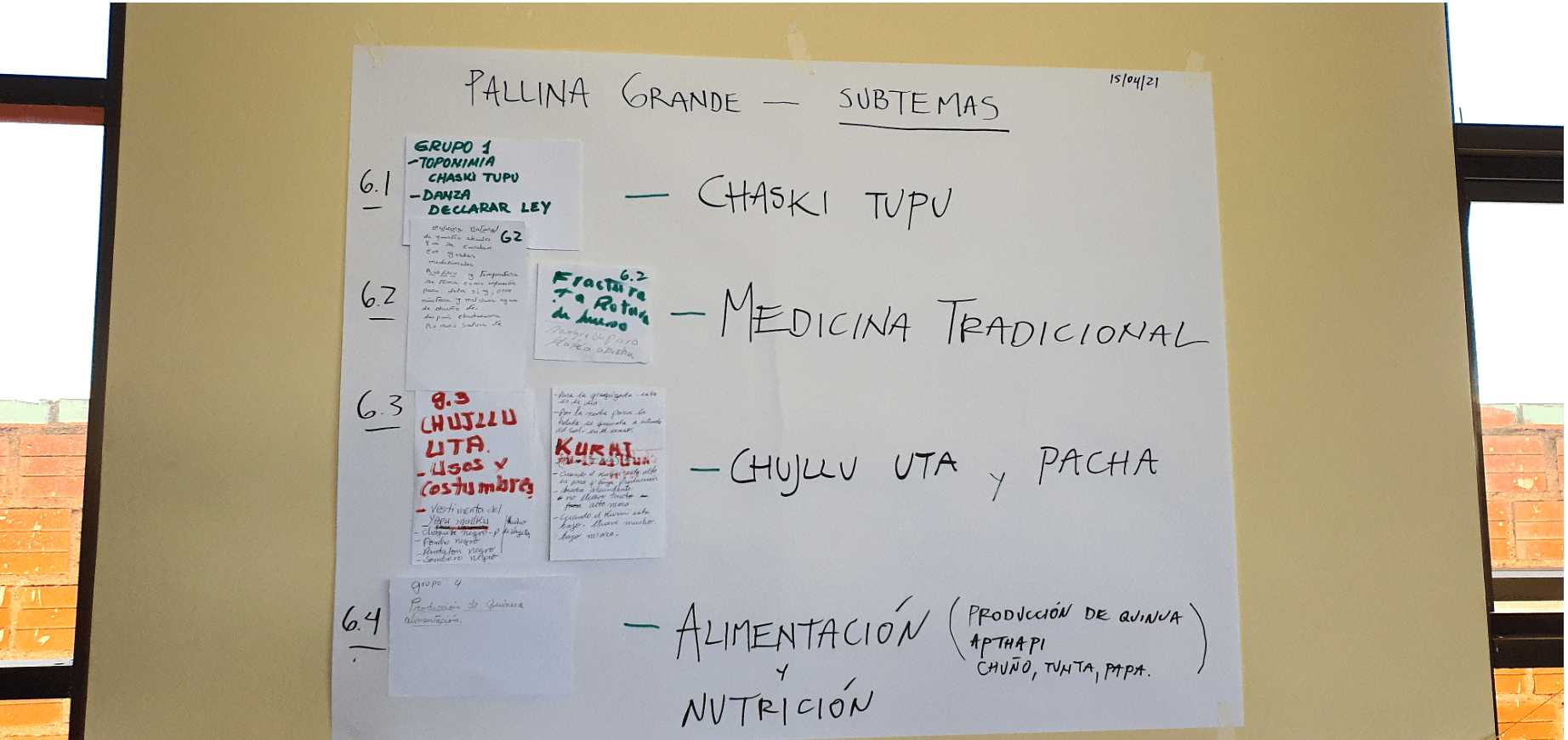 Los saberes ancestrales son las prácticas y rituales realizados en nuestras comunidades (rituales de siembra, lluvia, abono de suelos y cosechas); así como saberes y costumbres (medicina tradicional, vestuarios, cocina, tejidos, música). No podemos mostrar TODOS nuestros saberes, pero podemos seleccionar los temas y sub temas más representativos.